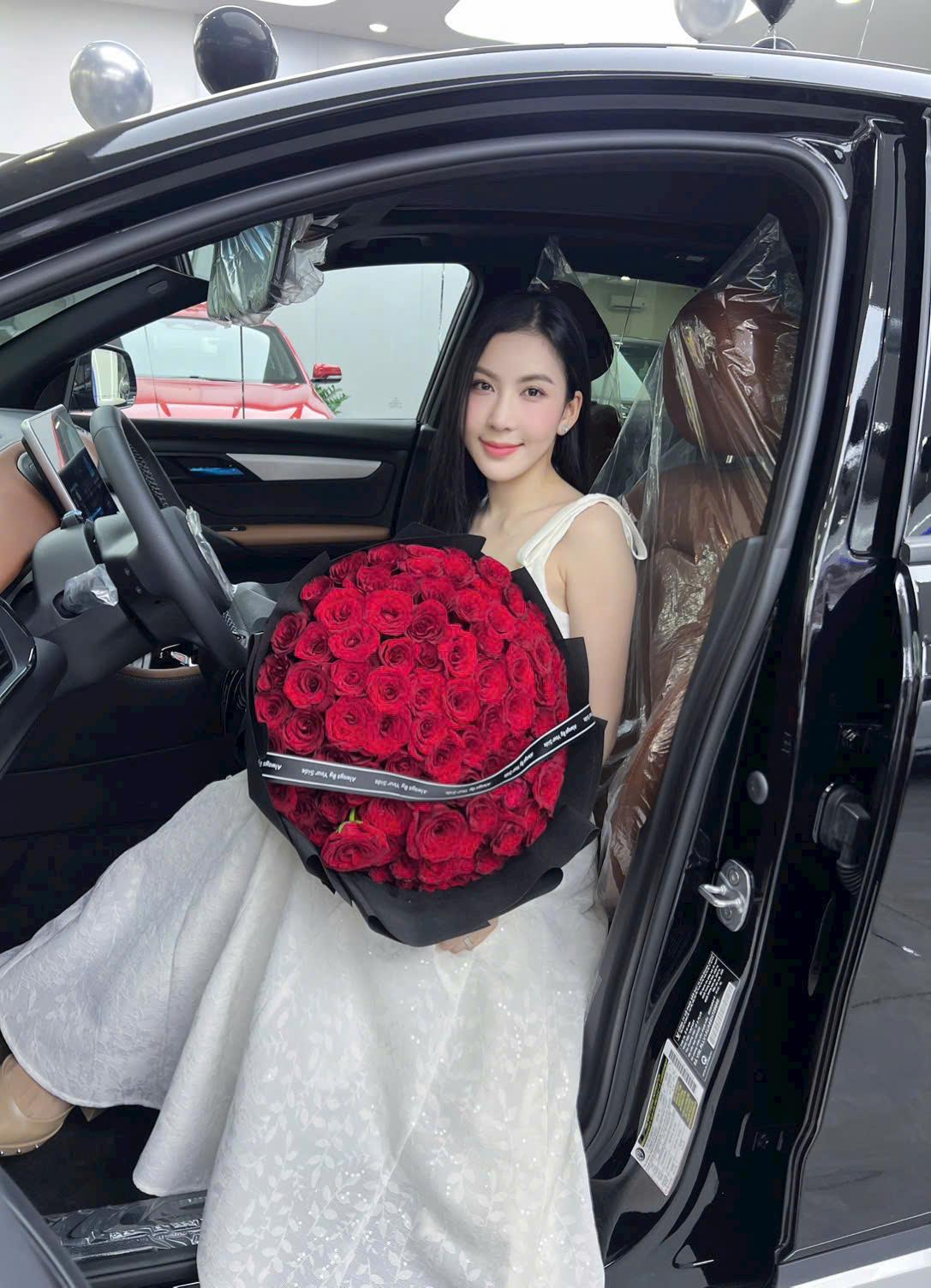 Khoảnh khắc bàn giao: đại diện VinFast trao chìa khóa cùng bó hoa tươi thắm, thay lời chúc thượng lộ bình an – vạn dặm an khang.